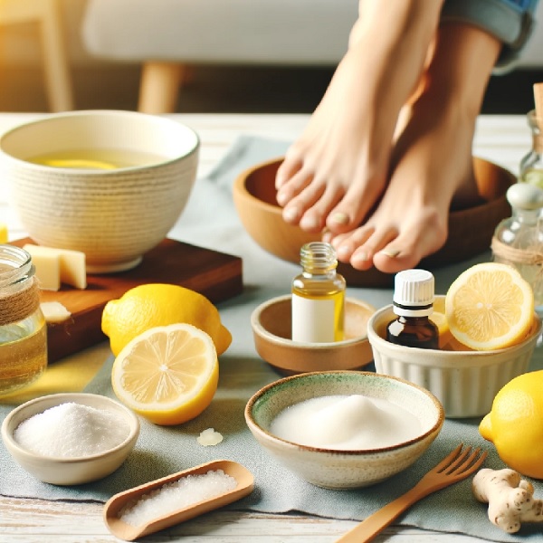 - Ein Fußbad mit einer Mischung aus Wasser und Apfelessig vorbereiten.